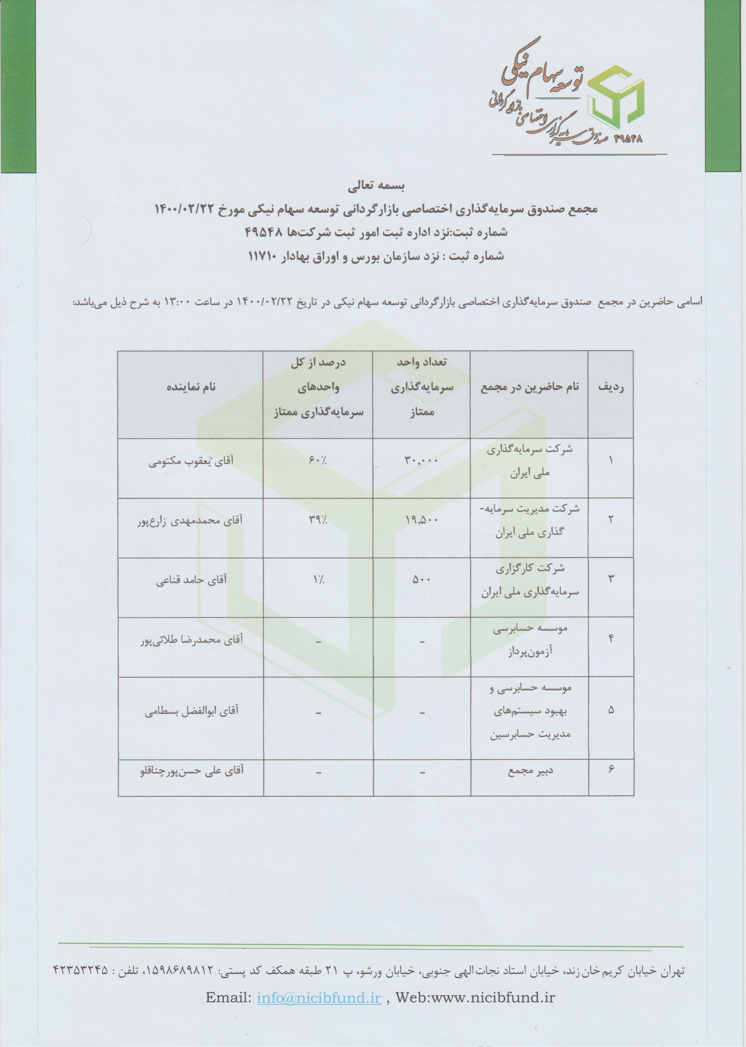 اسامی حاضرین در مجمع صندوق مورخ 1400/02/22