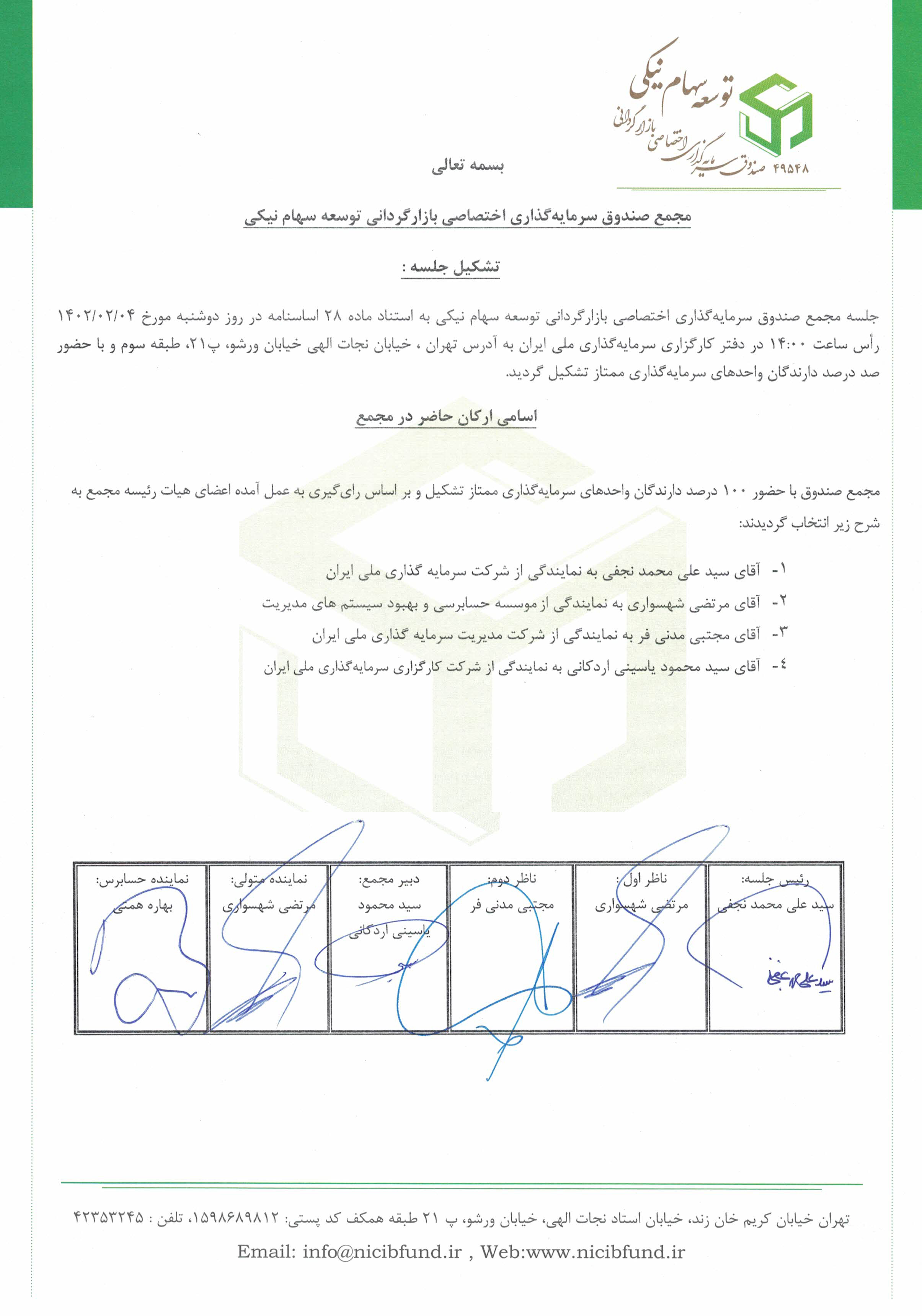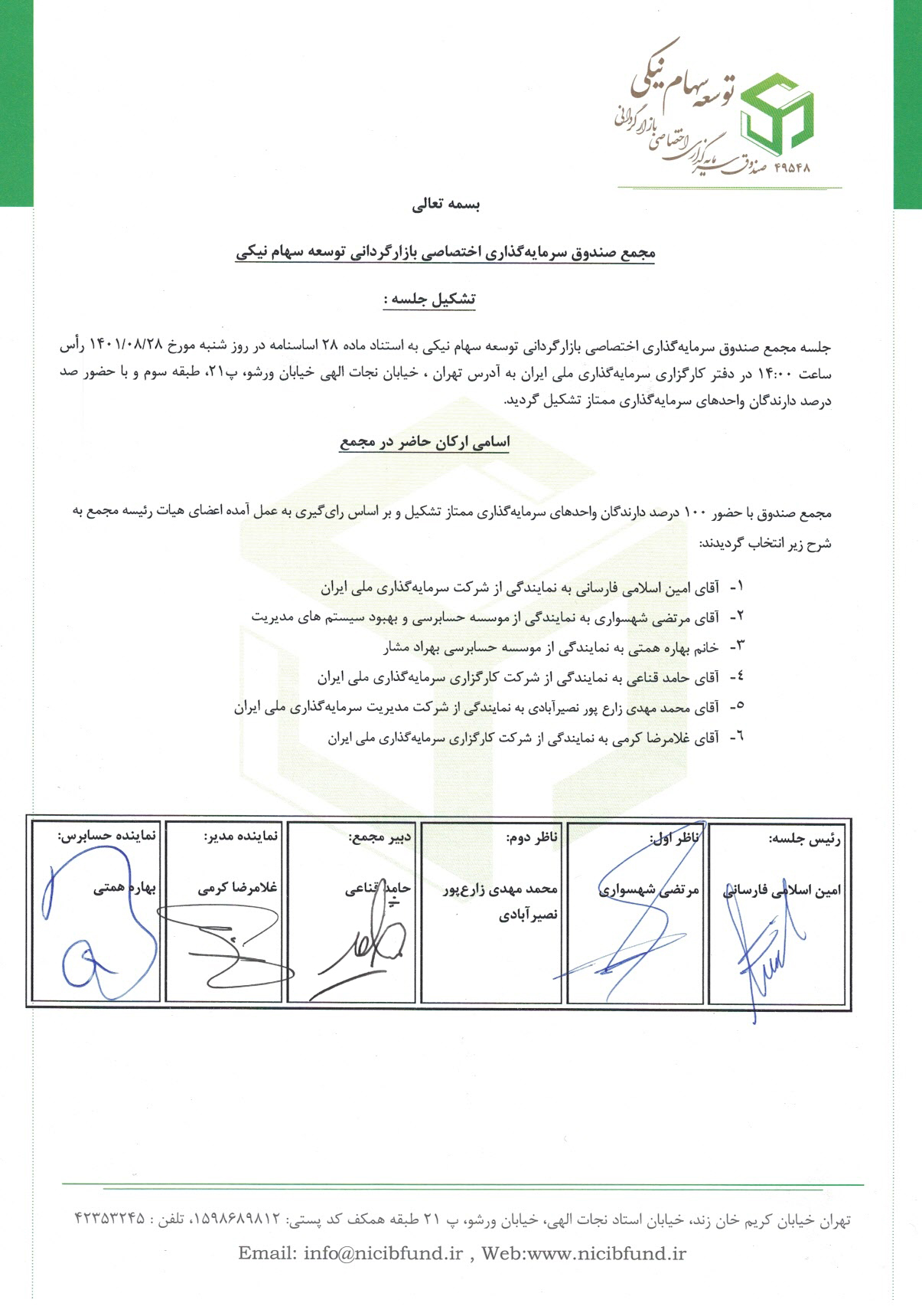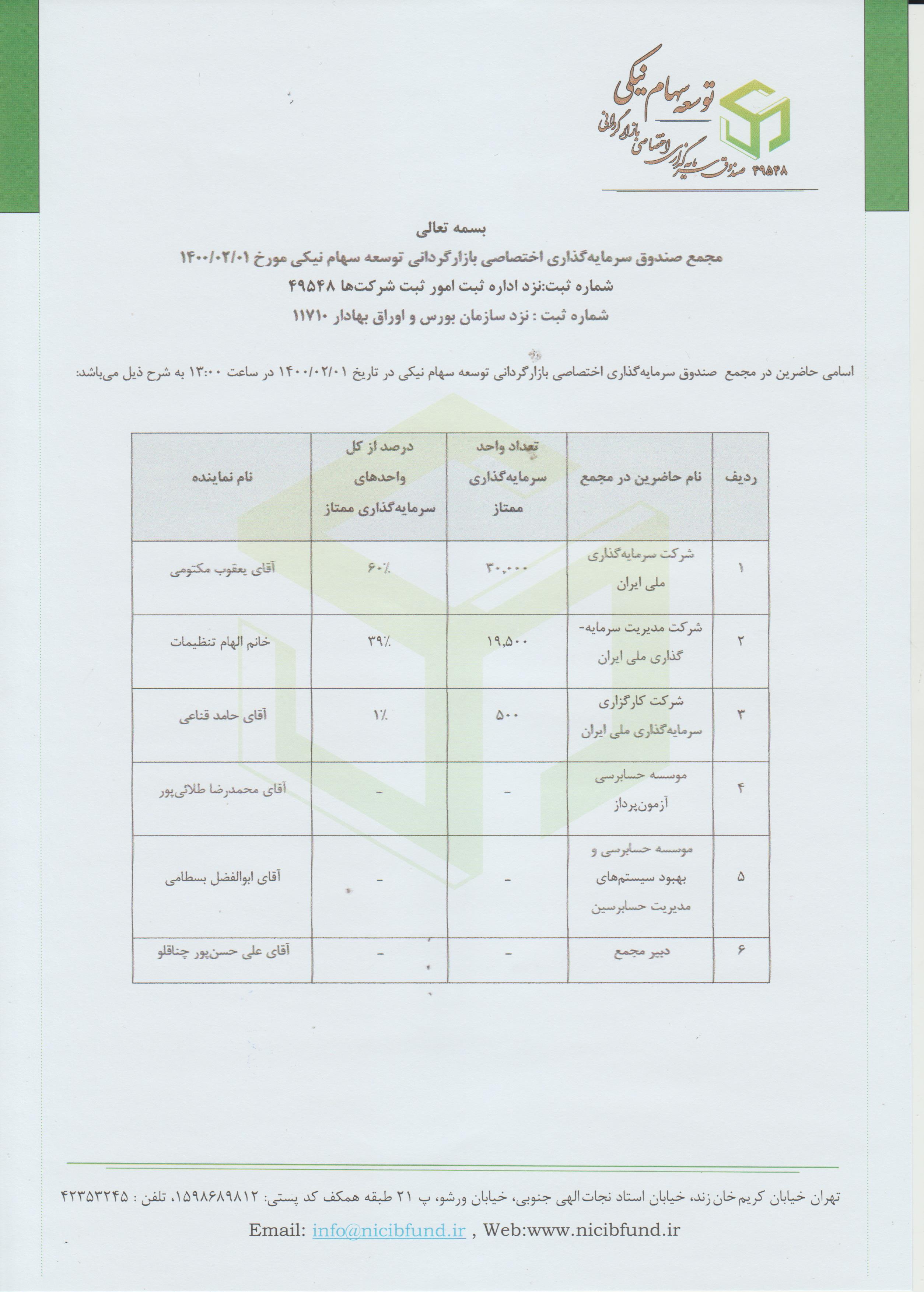تصمیمات مجمع صندوق سرمایه گذای ا.ب توسعه سهام نیکی مورخ ۱۴۰۰/۰۲/۰۱