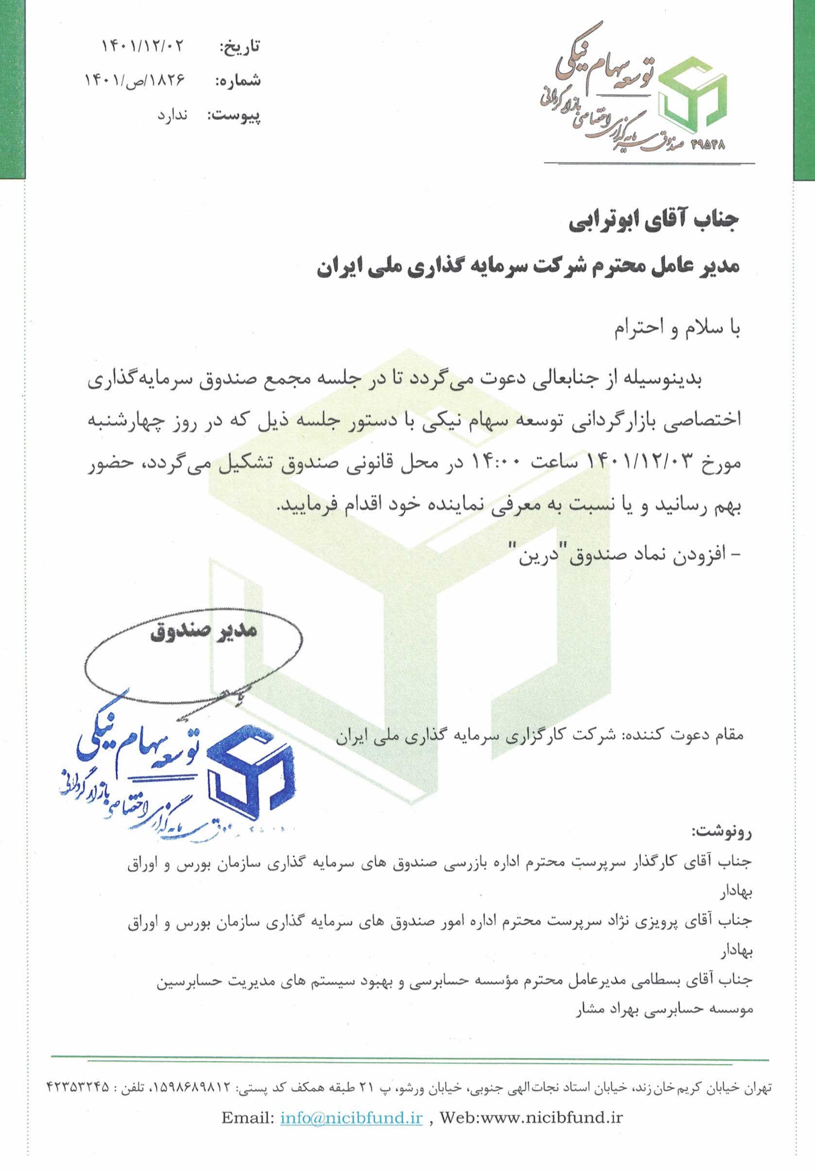 دعوت به مجمع ۱۴۰۴/۰۶/۲۲ با موضوع"خروج نماد درین"