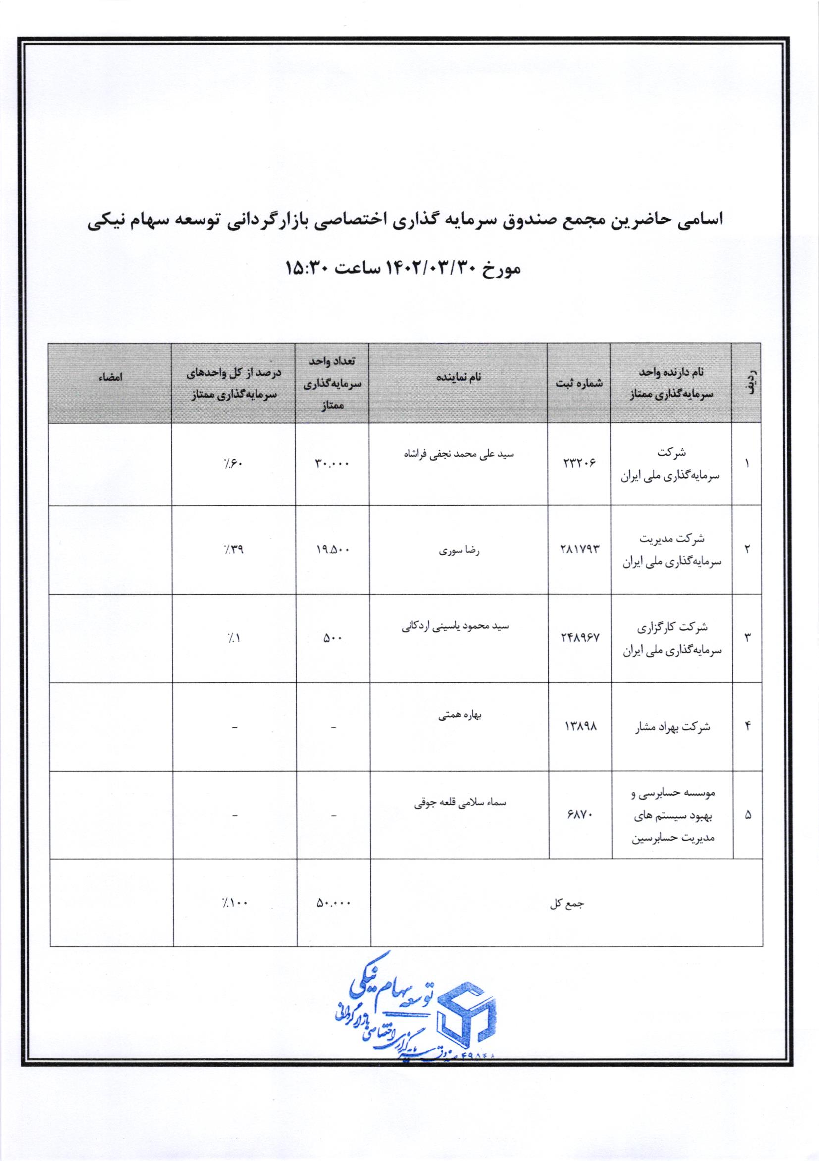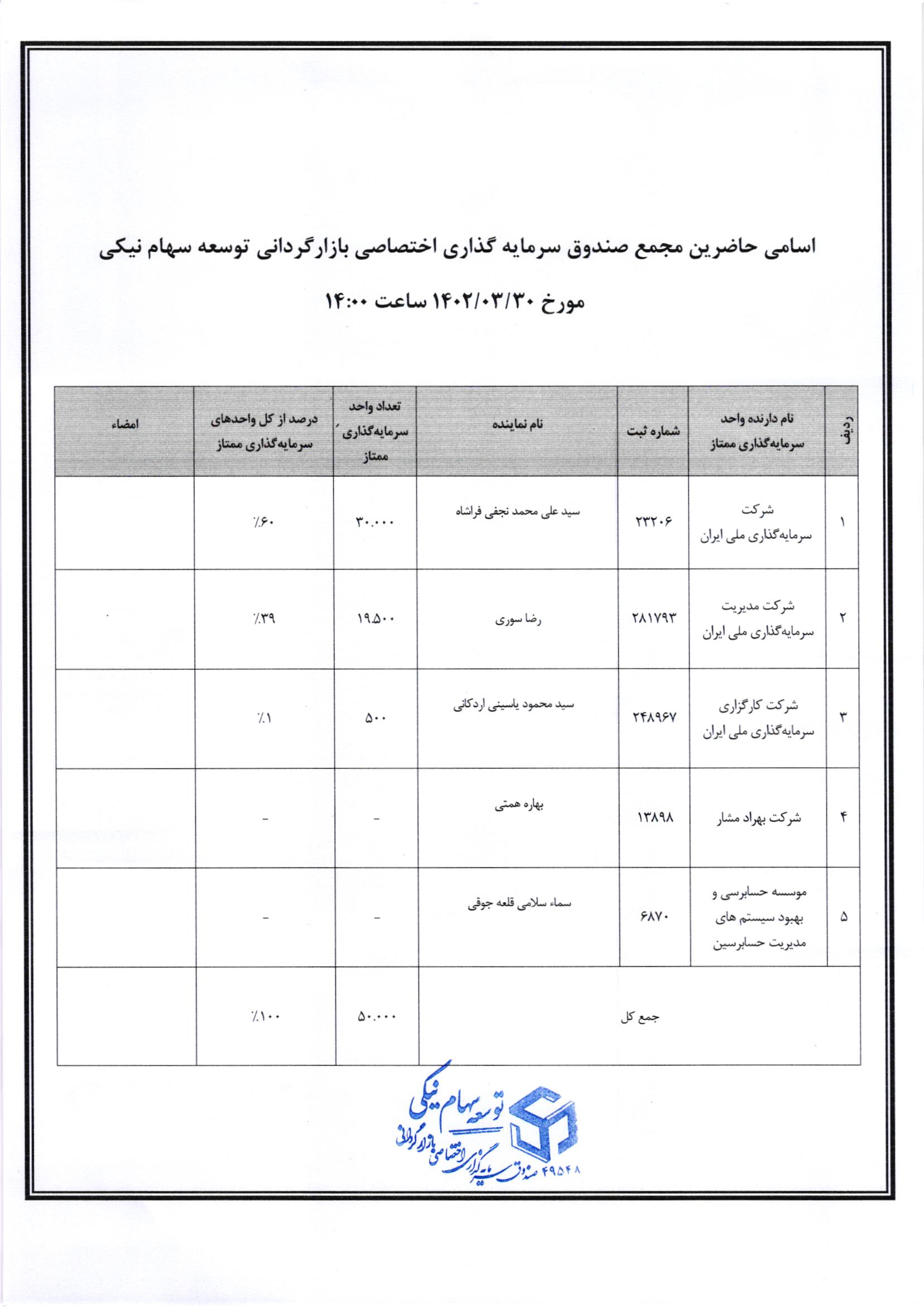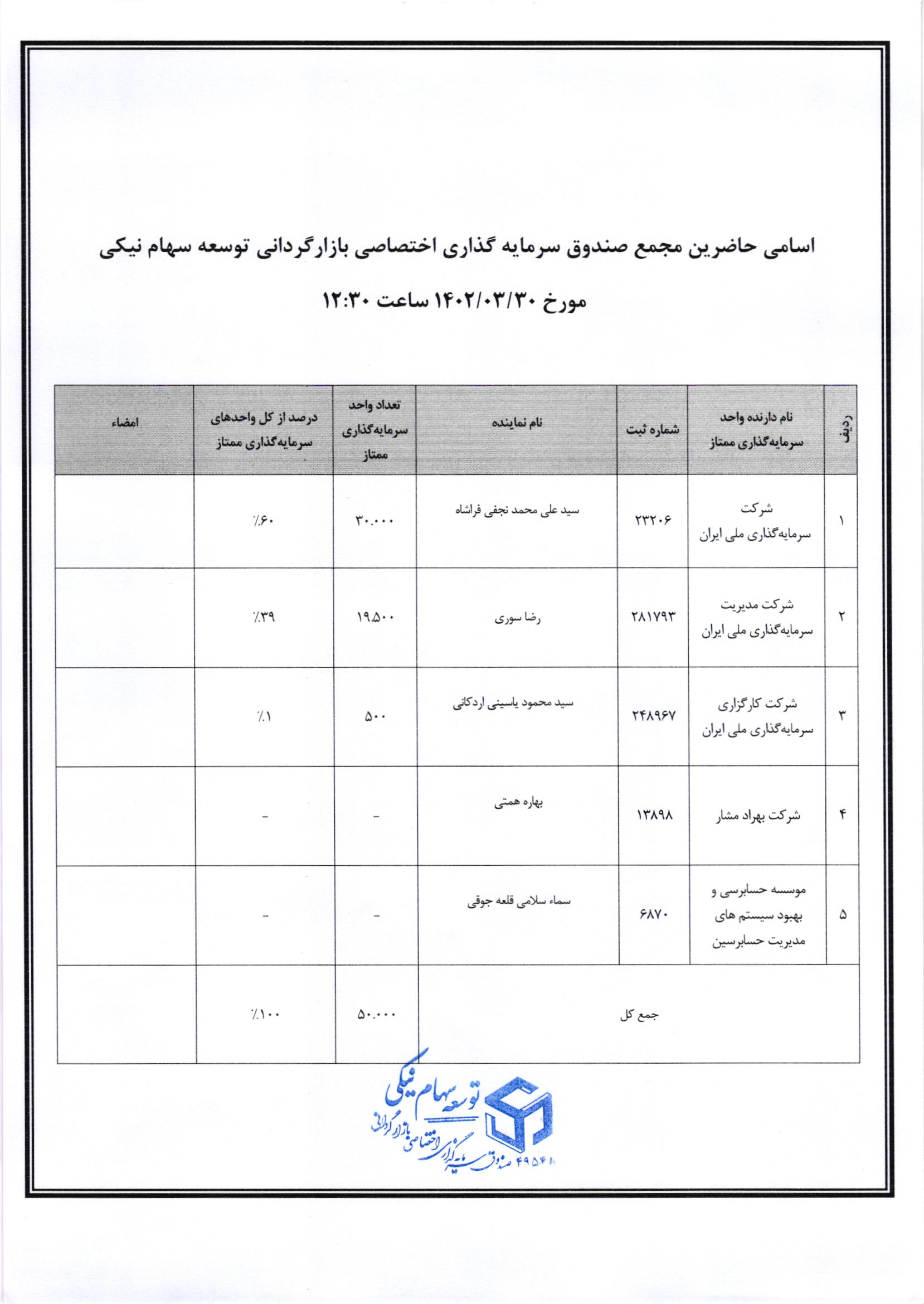 اسامی حاضرین در مجمع صندوق مورخ۱۴۰۰/۰۲/۰۱