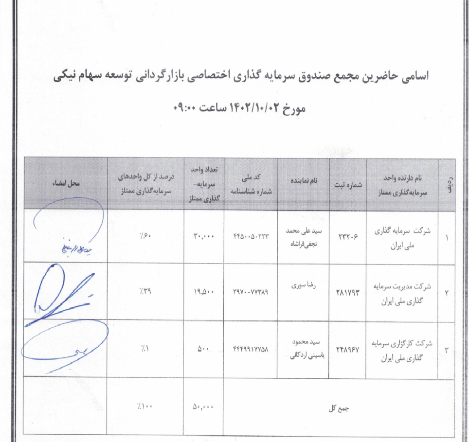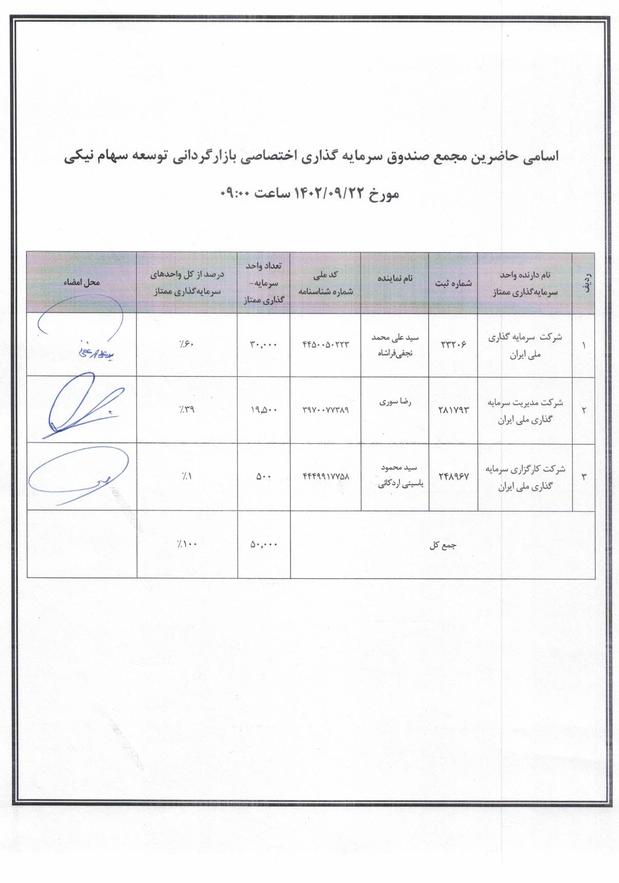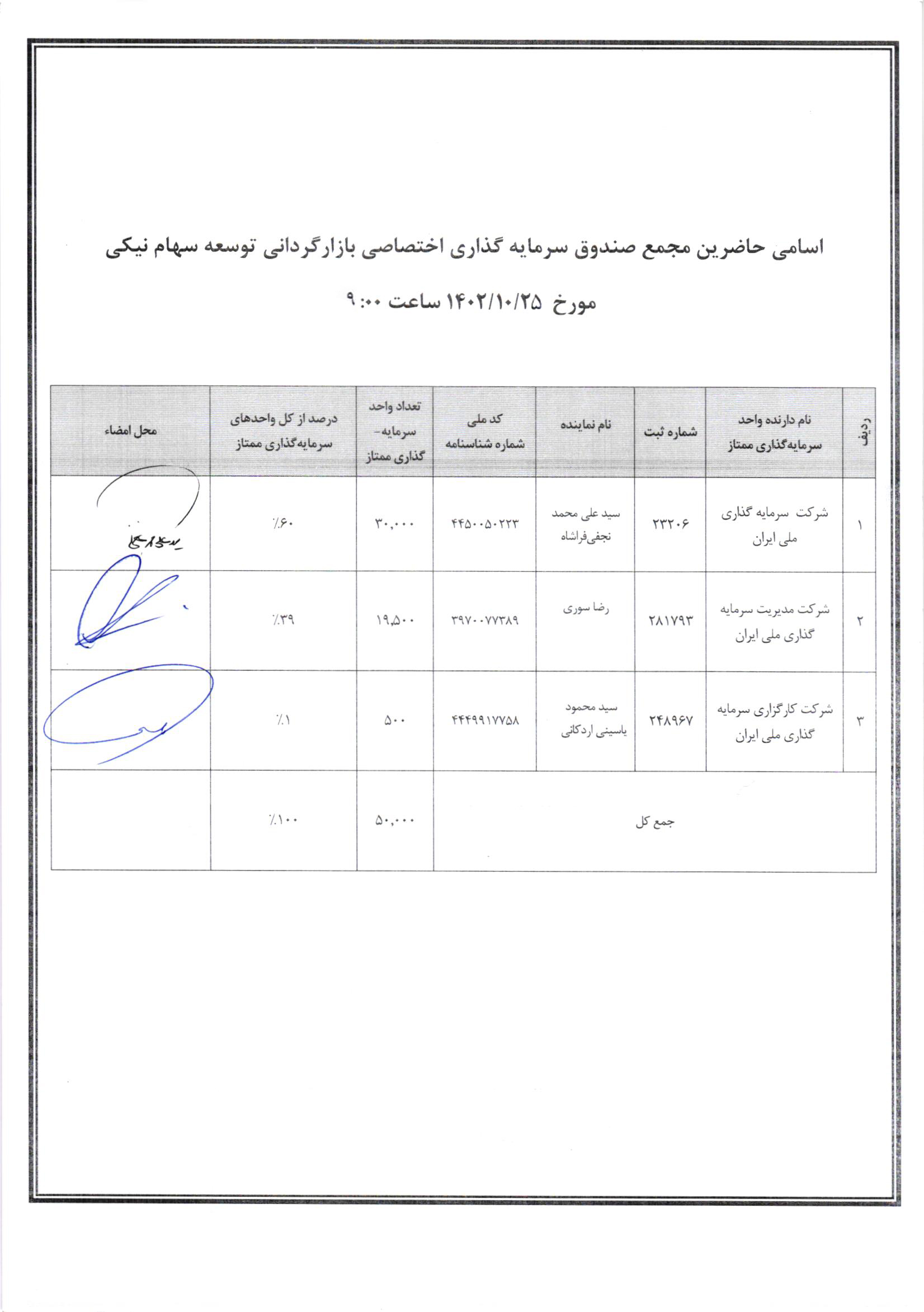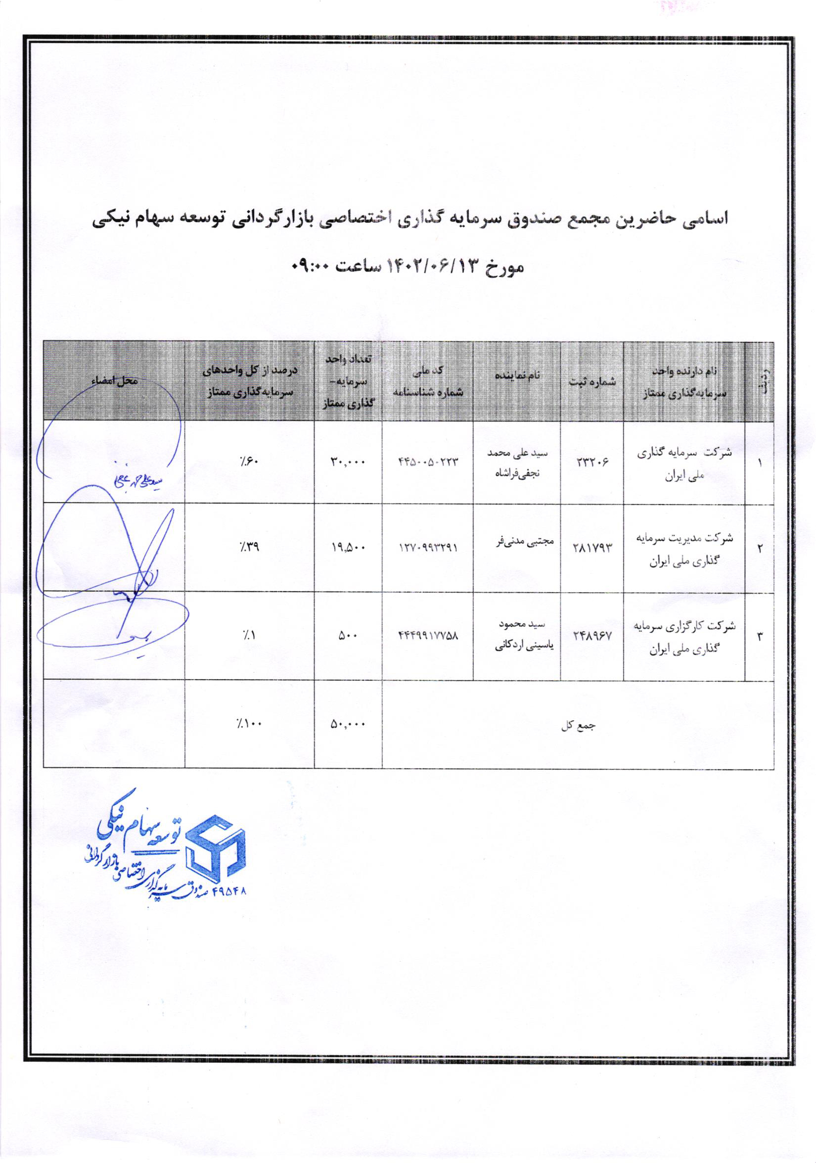 اسامی حاضرین در مجمع صندوق مورخ۱۴۰۰/۰۲/۰۱